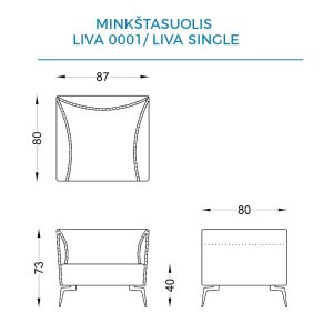 Minkštasuoliai ant metalinių kojų, gali būti aptraukti pasirinktos spalvos eko oda arba audiniu.