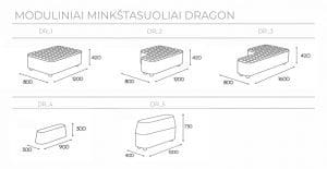 Minkštasuolių DRAGON modulių kainos be PVM: