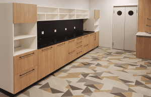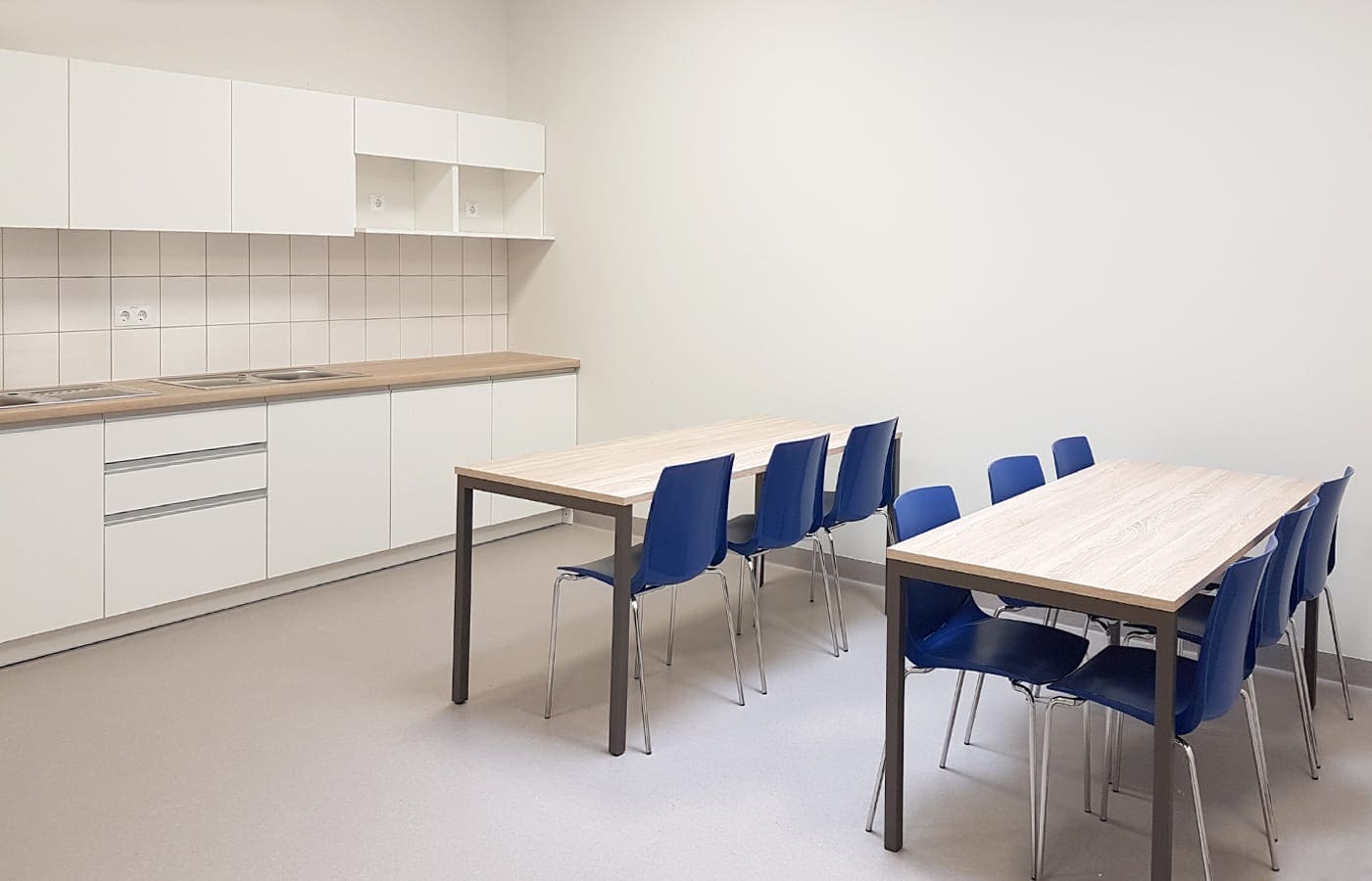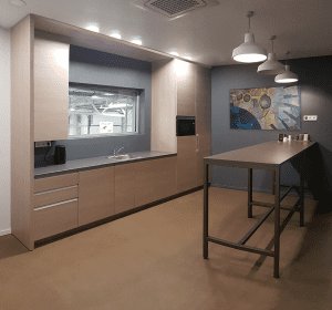 Priklausomai nuo darbuotojų skaičiaus, poreikių, įmonės veiklos specifikos skiriasi virtuvės baldų dydis, integruojamos technikos pobūdis ir kiekis.